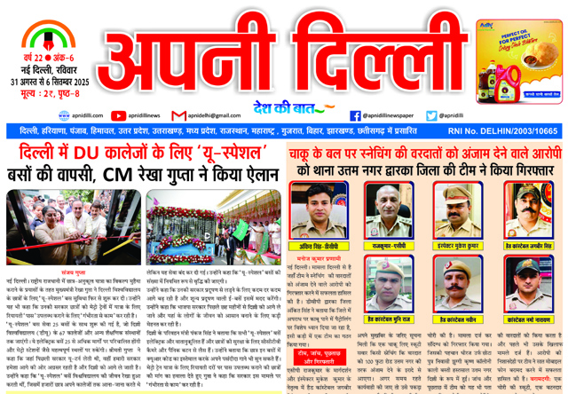 E-PAPPER Apni Dilli Newspaper 31 August to 6 September 2025 August 30, 2025 Sunil Kumar Post Views: 1,410